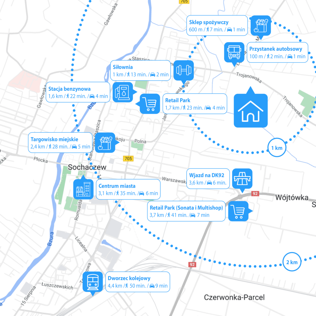 Osiedle Trojanowska, ze względu na swoje usytuowanie stanowi idealne miejsce dla rodzin z dziećmi. Tuż przy inwestycji znajduje się przystanek autobusowy a w mieście znajdują się najważniejsze punkty na mapie każdej rodziny: przedszkola, szkoły, obiekty sportowe. Zwiń ∧